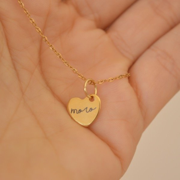 Pulsera con medalla en forma de círculo o corazón dorado personalizada.
